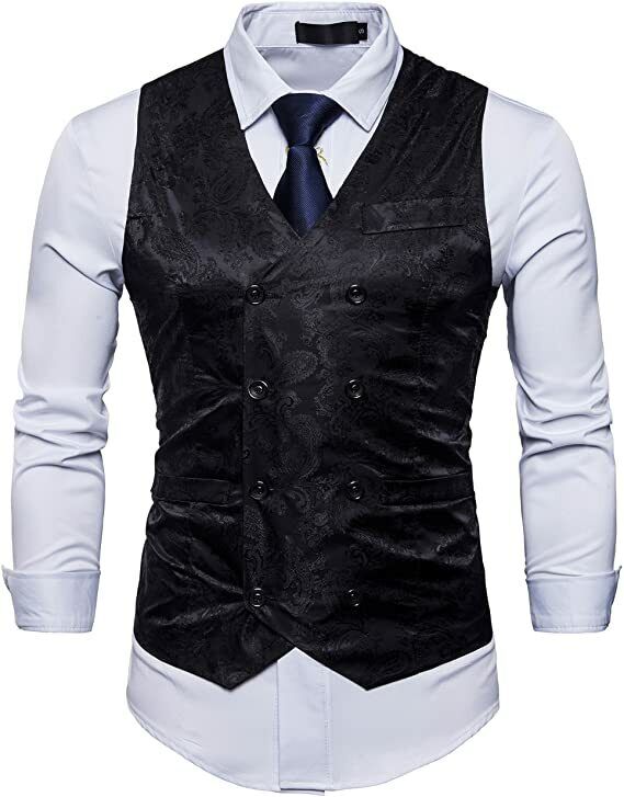 Showu Paisley Gilet Homme Sans Manches Slim Fit double boutonnage