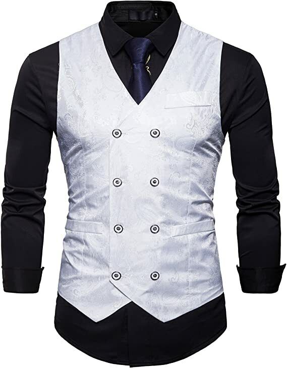 Showu Paisley Gilet Homme Sans Manches Slim Fit double boutonnage