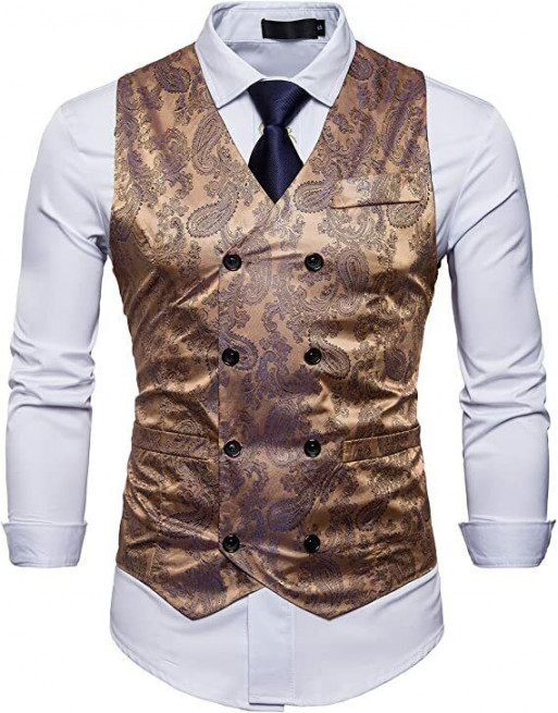 Showu Paisley Gilet Homme Sans Manches Slim Fit double boutonnage