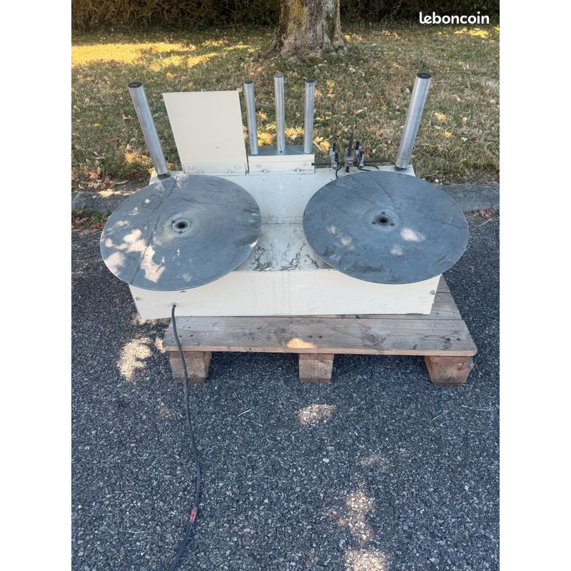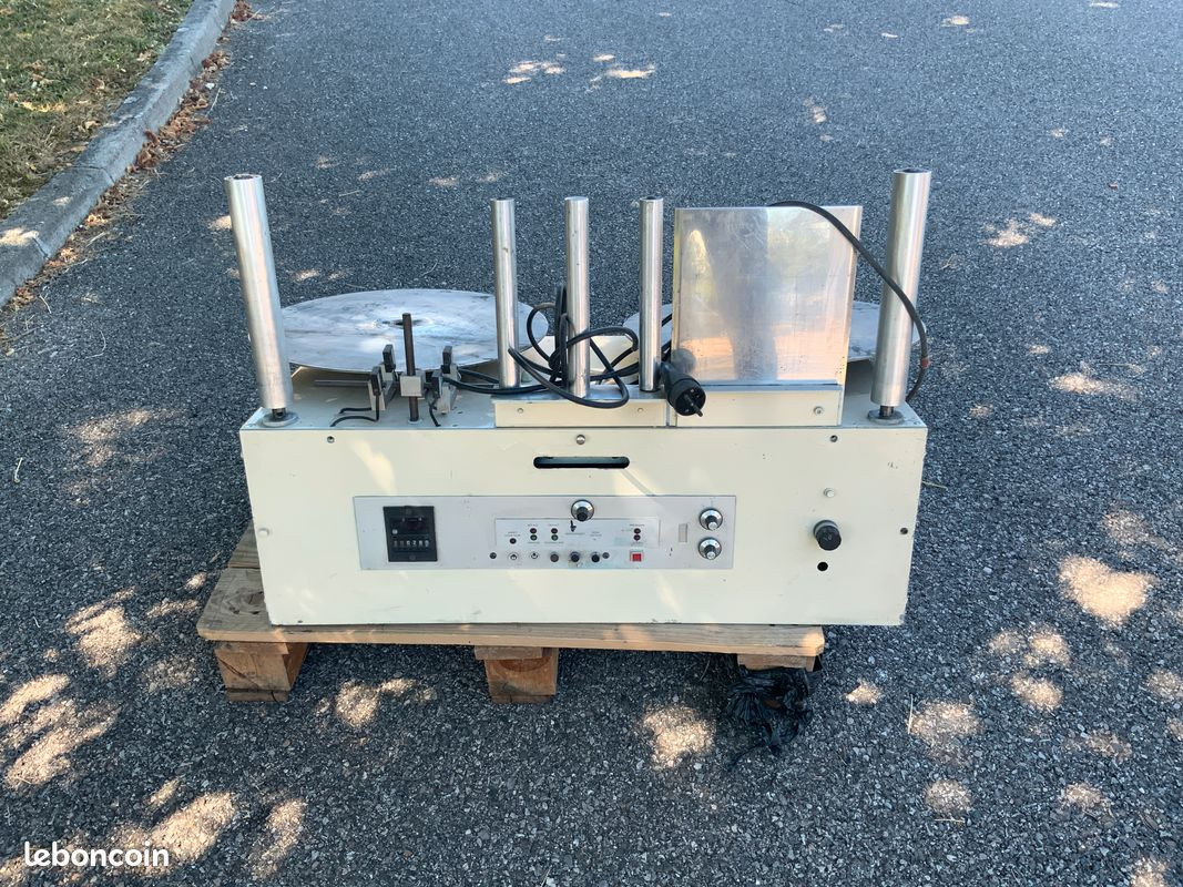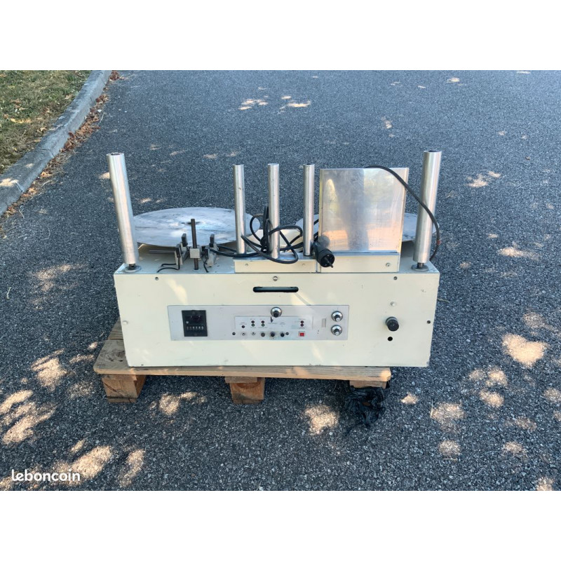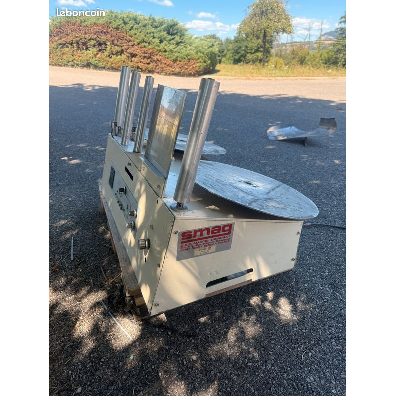 Rembobineuse d’étiquettes (ou rembobineuse bobineuse de bande adhésive/imprimée) • Marque : SMAG • Usage : Permet d’enrouler ou de dérouler des rouleaux d’étiquettes ou de matériaux similaires pour inspection, tri, ou préparation à l’impression ou à l’étiquetage. SMAG est connu pour ses équipements semi-automatiques pour l’industrie de l’étiquette. ⸻ ✅ Fonctionnalités visibles • Deux plateaux en métal pour accueillir les bobines (entrée/sortie) • Systèmes de guidage verticaux • Capteurs mécaniques pour détection de passage • Commandes en façade (arrêt/marche, compteurs, potentiomètres) • Boîtier électrique intégré • Numéro de série visible, ce qui pourrait aider à identifier précisément le modèle si besoin