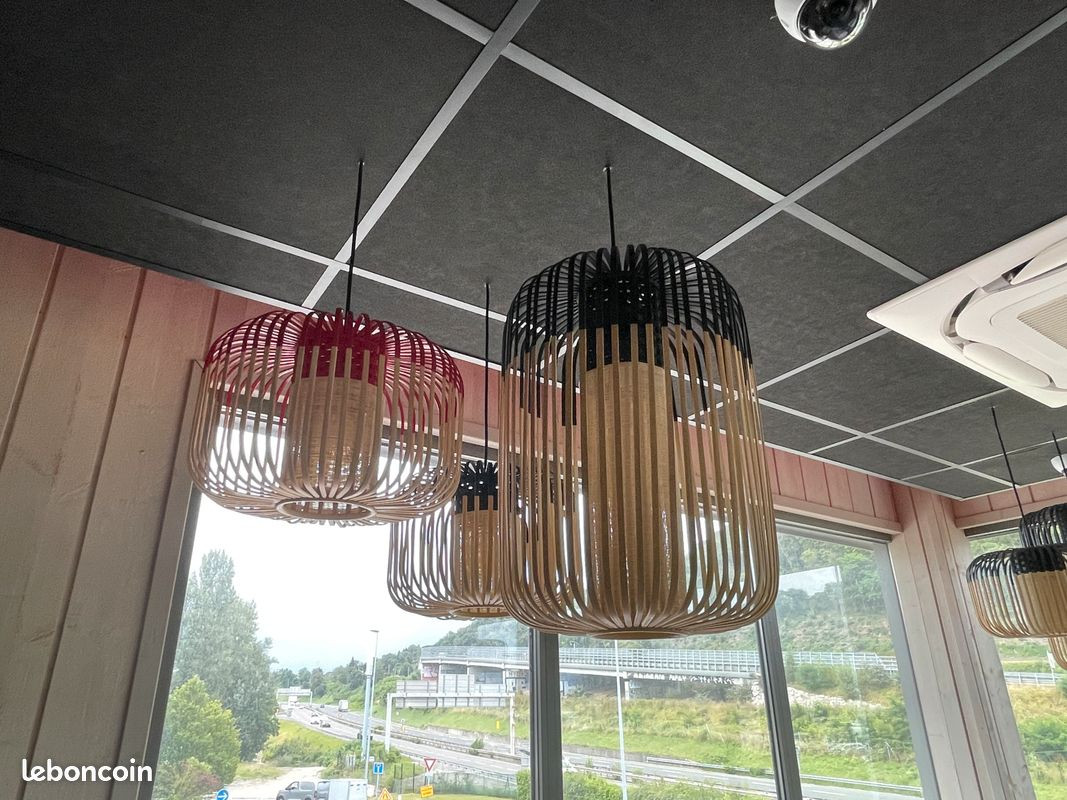 💡 Culot ampoule : E27 (LED – 11W max) • ✅ Indice de protection : IP44 – idéale pour l’extérieur (terrasse, jardin couvert) • 🌱 Matériau principal : Bambou • 📐 Dimensions : • Hauteur : 50 cm • Diamètre : 35 cm • Poids : 0,91 kg • ⚙️ Classe électrique : Classe II – certification CE • ⚫ Coloris : noir ⸻ 📸 Produit d’occasion vendu tel que visible sur les photos de l’annonce 💰 Prix à l’unité