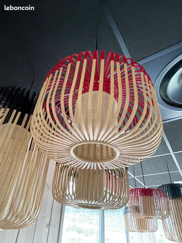 Caractéristiques techniques : • 💡 Culot ampoule : E27 (LED – 11W max) • ✅ Indice de protection : IP44 – parfaite pour l’extérieur (terrasse, balcon, pergola) • 🌱 Matériau principal : Bambou • 📐 Dimensions : • Hauteur : 23 cm • Diamètre : 35 cm • Poids : env. 0,9 kg • ⚙️ Classe électrique : Classe II – certification CE • 🔌 Ampoule non incluse ⸻ 📸 Produit d’occasion, vendu tel que visible sur les photos de l’annonce 💰 Prix à l’unité – quantité limitée par coloris