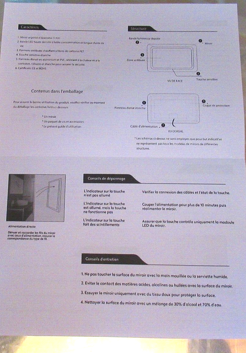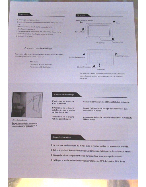 MIROIR SALLE DE BAIN LUMINEUX BANDE LED 70X50X4CM