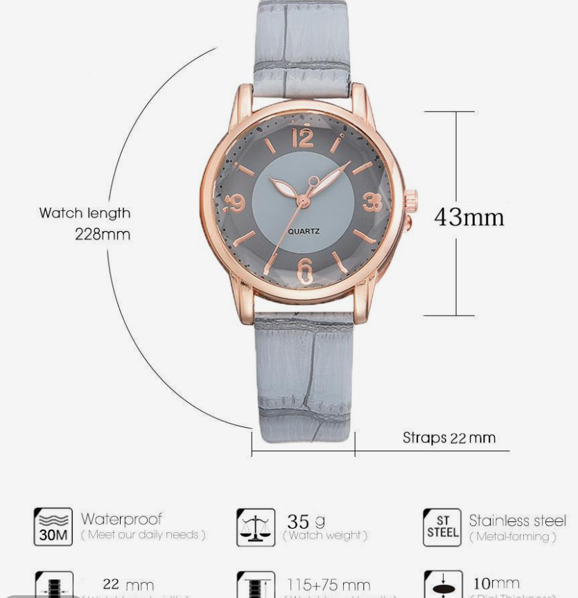 Montres à Quartz pour femmes, bracelet en PU bleu
