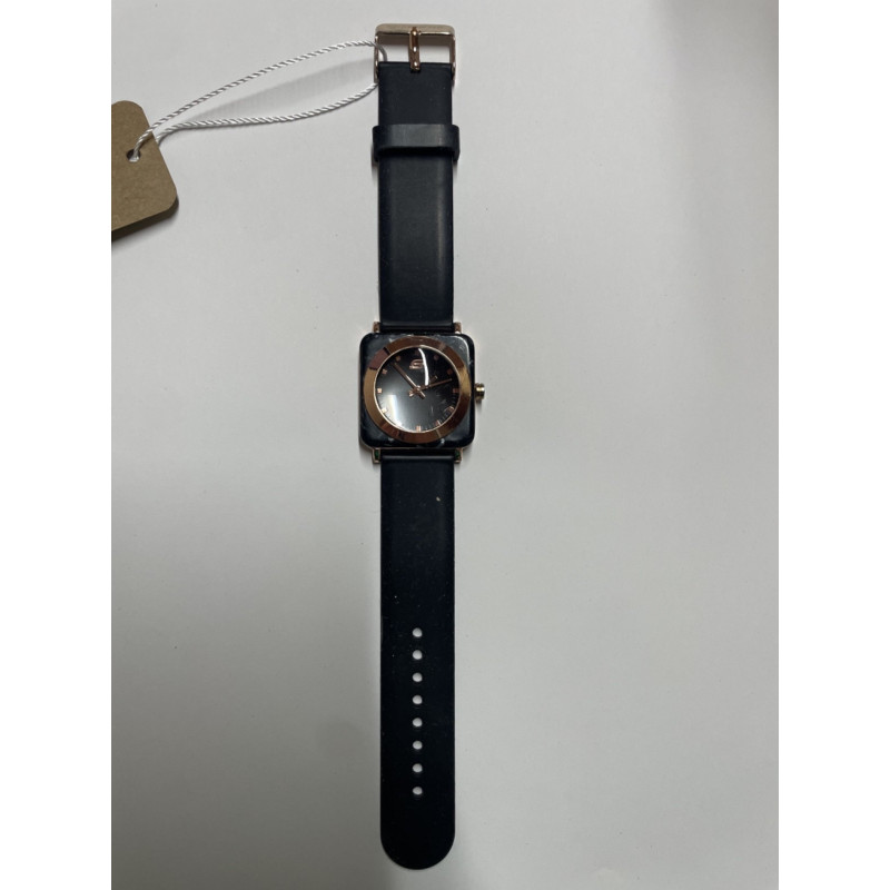Boîtier carré en alliage métallique avec cadran noir ; bracelet en silicone noir