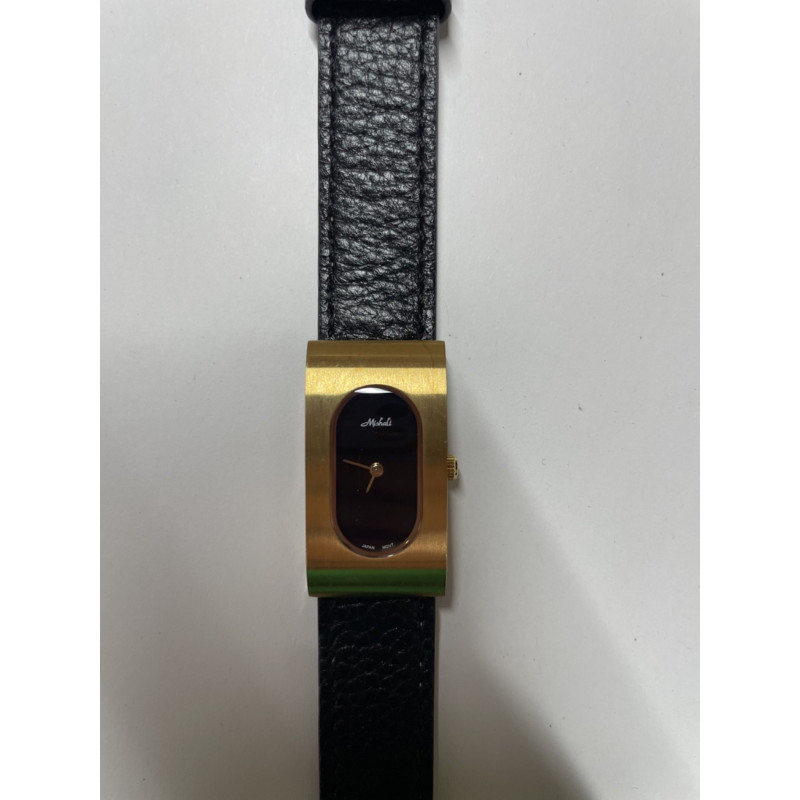 Montre Mishali à quartz ovale en cuir noir doré élégant 37