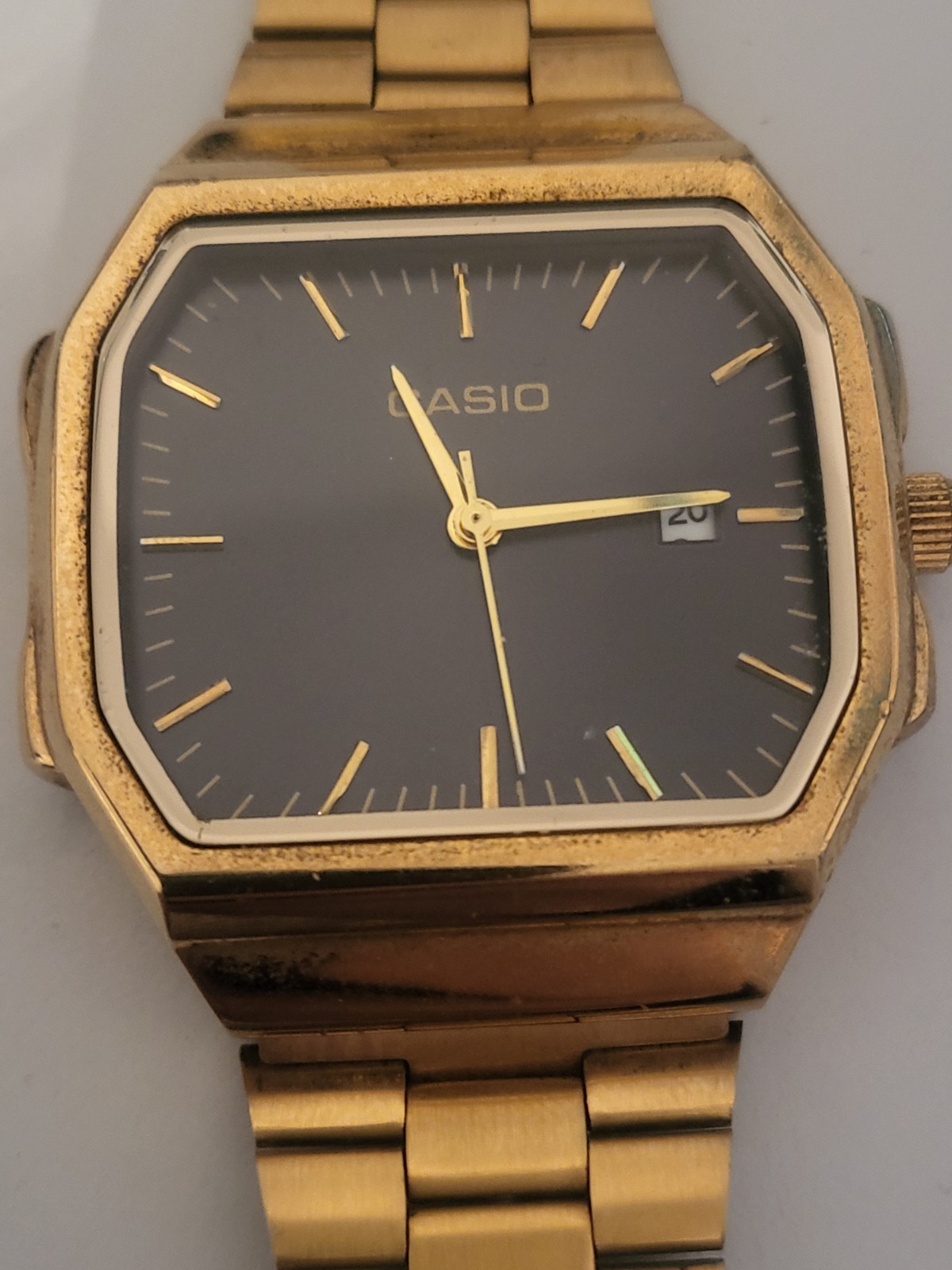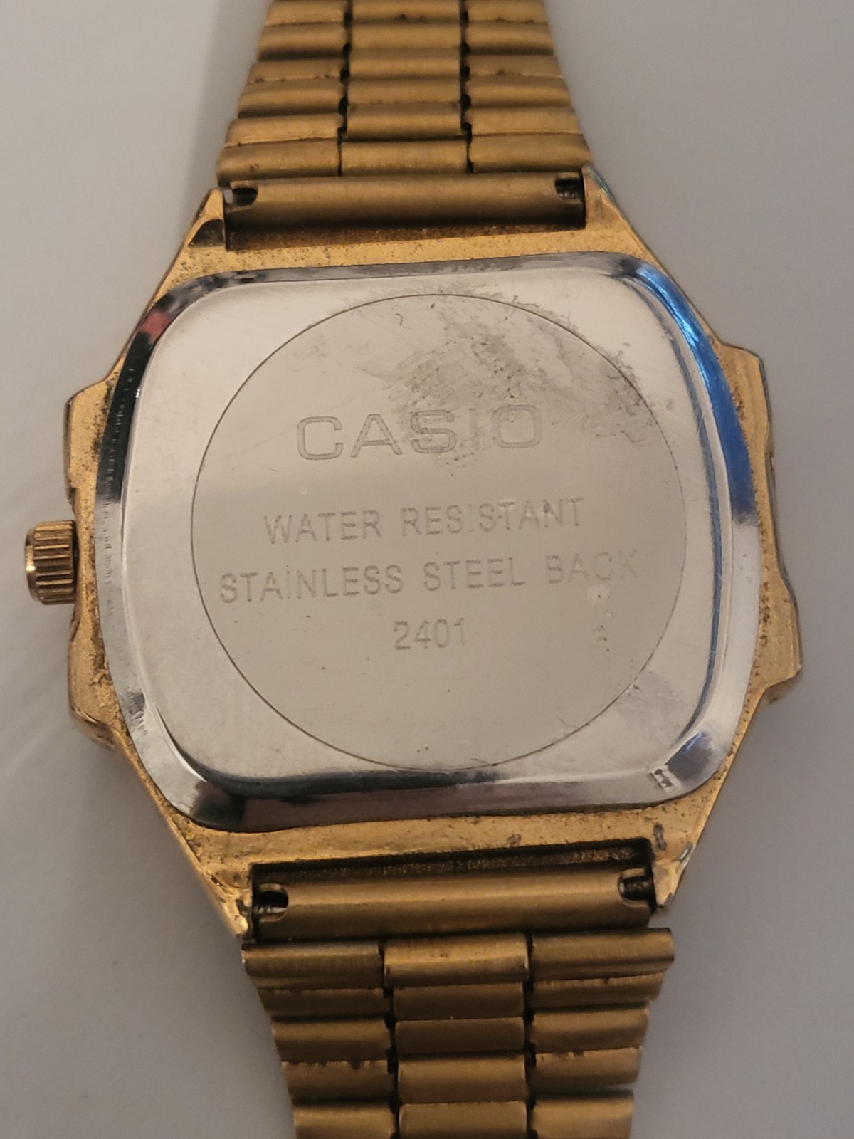 CASIO Montre 2401 bracelet acier doré clip cadran noir water resistant (7)