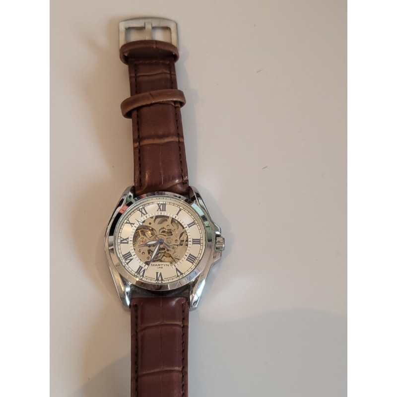 MARTYN Montre automatic Edition limitée bracelet cuir cadran transparent (31)