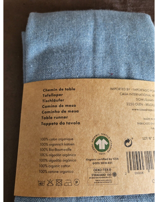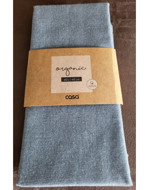 CASA Chemin de table ORGANIC 40 x 140 cm rectangulaire bleu 100% coton organique