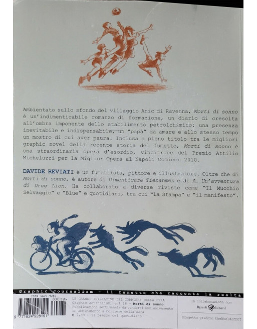 Six enfants vivant leur enfance dans le village ANIC de Ravenne, dans l’ombre menaçante (et toxique) du pôle pétrochimique né en 1958. Nous revivons leur histoire dans les yeux de l’un des garçons, Rino, connu sous le nom de Koper, dans un récit brut et efficace, qui traite de questions difficiles telles que la toxicomanie et le sida. Reviati écrit des pages inoubliables, nous faisant vivre avec ses protagonistes les joies et les peines d’une génération emportée par la drogue et un malaise existentiel qui n’est pas très littéraire mais dramatiquement vif dans son caractère concret. Entre l’apparition de l’héroïne et la victoire de l’Italie à la Coupe du monde de football, une parabole brûlante et inoubliable est consommée.