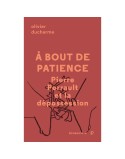 Comme les personnages des documentaires de Pierre Perrault, Olivier Ducharme est à bout de patience... Devant le laisser-faire propre à l'économie triomphante et l'absence apparente d'alternative, la colère qui traverse l'oeuvre cinématographique du réalisateur de Pour la suite du monde est saine, et d'une brûlante actualité. Mais quel sens donner à cette filmographie empreinte de colère et d'indignation? À bout de patience se penche sur la notion de dépossession économique et culturelle dépeinte dans les récits que Perrault rapporte de ses aventures en Québécoisie, et qu'il approfondit à partir du dernier volet de la trilogie de l'île aux Coudres ainsi que dans les cycles abitibien et amérindien. À travers l'oeil de la caméra du documentariste, Ducharme convoque les personnages et les images qui habitent les films de Perrault pour penser notre époque: prolétarisation et dette (Les voitures d'eau), perte du territoire et dépossession agricole (Un royaume vous attend), dépossession culturelle chez les Autochtones (Le goût de la farine). Le constat est amer: nos sociétés sont soumises à un inexorable processus de dépossession face au rouleau compresseur de la mondialisation, aboutissant à une profonde perte de pouvoir des populations. Se réappropriant la parole critique de Perrault, Ducharme nous rappelle que, par son indépendance d'esprit, le poète-cinéaste demeure une référence pour les luttes actuelles et futures. Perrault aimait rappeler qu'il faut «faire quelque chose de ce qu'on a fait de nous». Ainsi, pour Ducharme, «si la mémoire et l'héritage de Perrault ont encore du sens aujourd'hui, c'est parce qu'ils nous convainquent que rien n'est plus important que la diversité culturelle et la liberté».