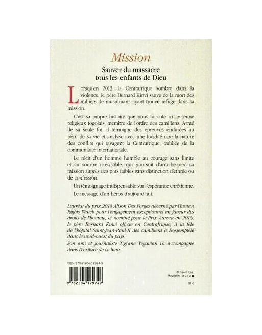 Lorsqu'en 2013, la Centrafrique sombre dans la violence, le père Bernard Kinvi sauve de la mort des milliers de musulmans ayant trouvé refuge dans sa mission. C'est sa propre histoire que nous raconte ici ce jeune religieux togolais, membre de l'ordre des camiliens. Armé de sa seule foi, il témoigne des épreuves endurées au péril de sa vie et analyse avec une lucidité rare la nature des conflits qui ravagent la Centrafrique, oubliée de la communauté internationale.