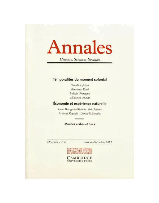 Annales histoires, sciences sociales Mondes arabes et turcs n° 4 oct-déc 2017