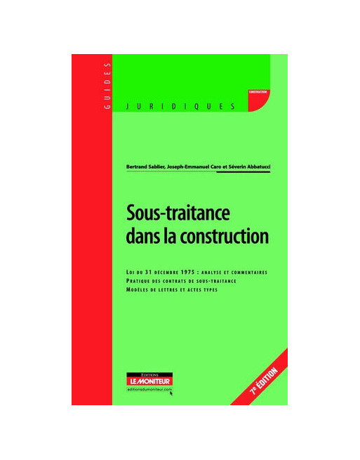 La bonne compréhension du droit de la sous-traitance s'avère incontournable pour éviter le risque de l'impayé. En effet, la loi du 31 décembre 1975, qui a notamment institué des garanties de paiement obligatoires au bénéfice exclusif des sous-traitants, est régulièrement impactée par une abondante jurisprudence et par des textes réglementaires ou professionnels qui en précisent les aspects essentiels.