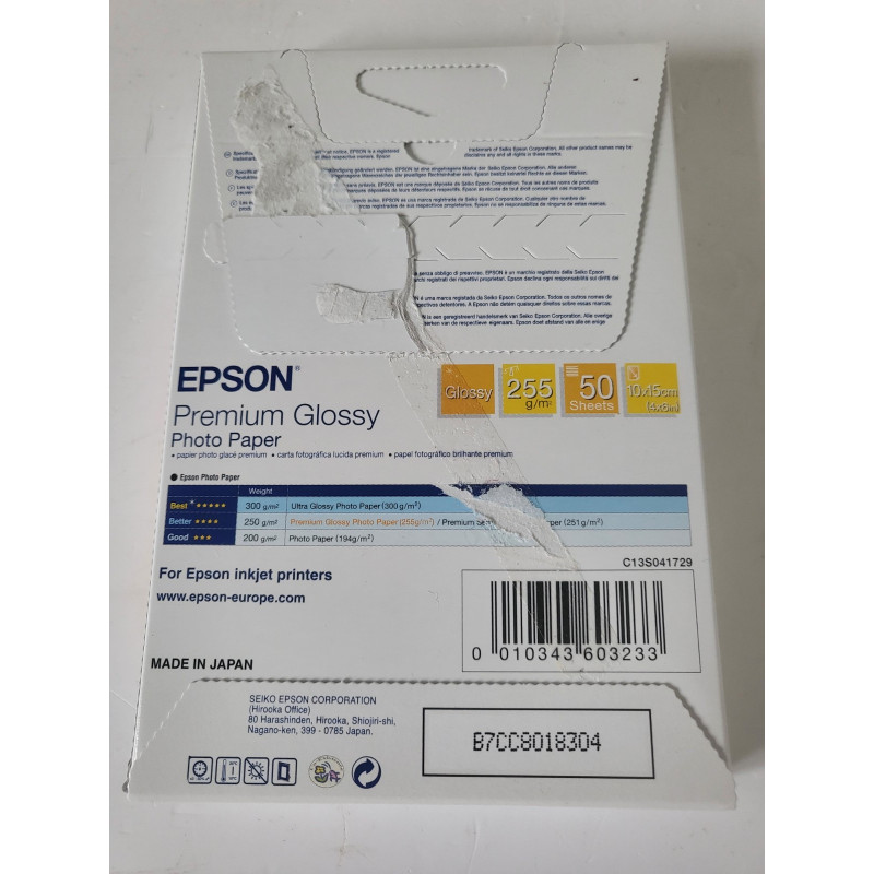 EPSON Papier Photo x 50 glacé brillant premium 255 g/m2 10 x 15 cm