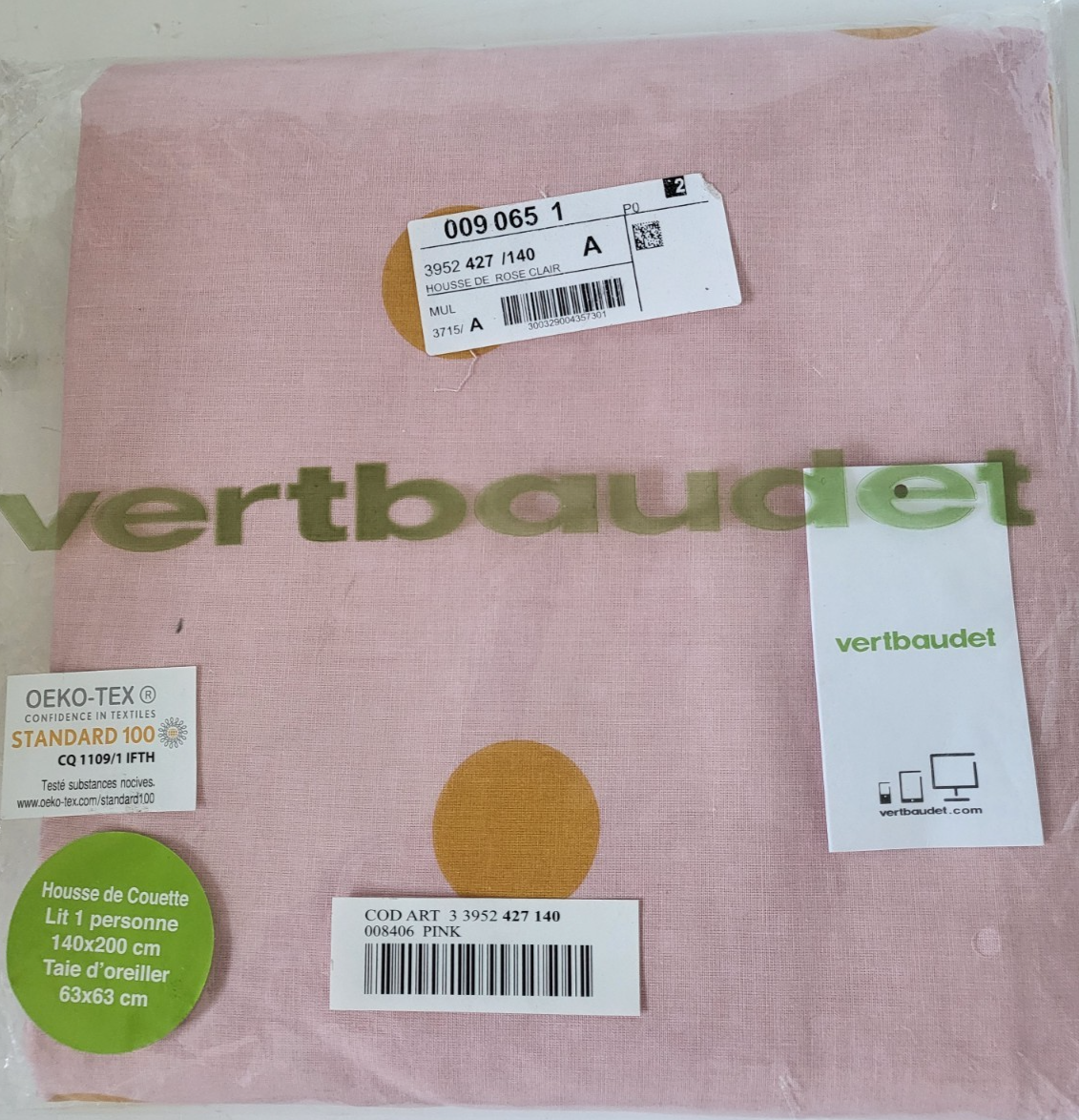 VERT BAUDET Parure housse de couette 140x200 cm rose à pois + 1 taie 63x63 cm