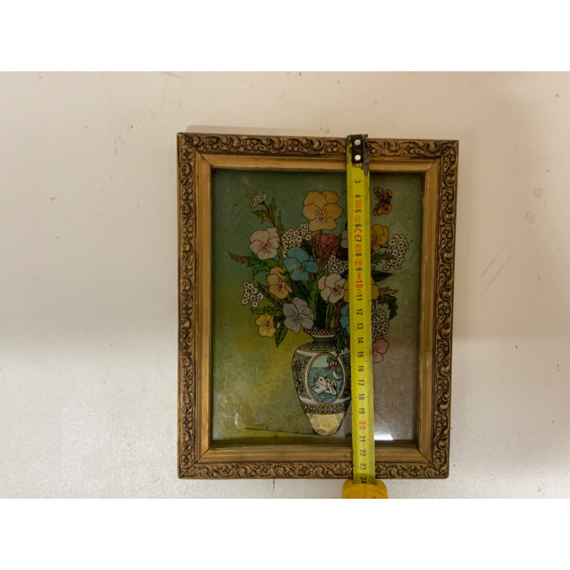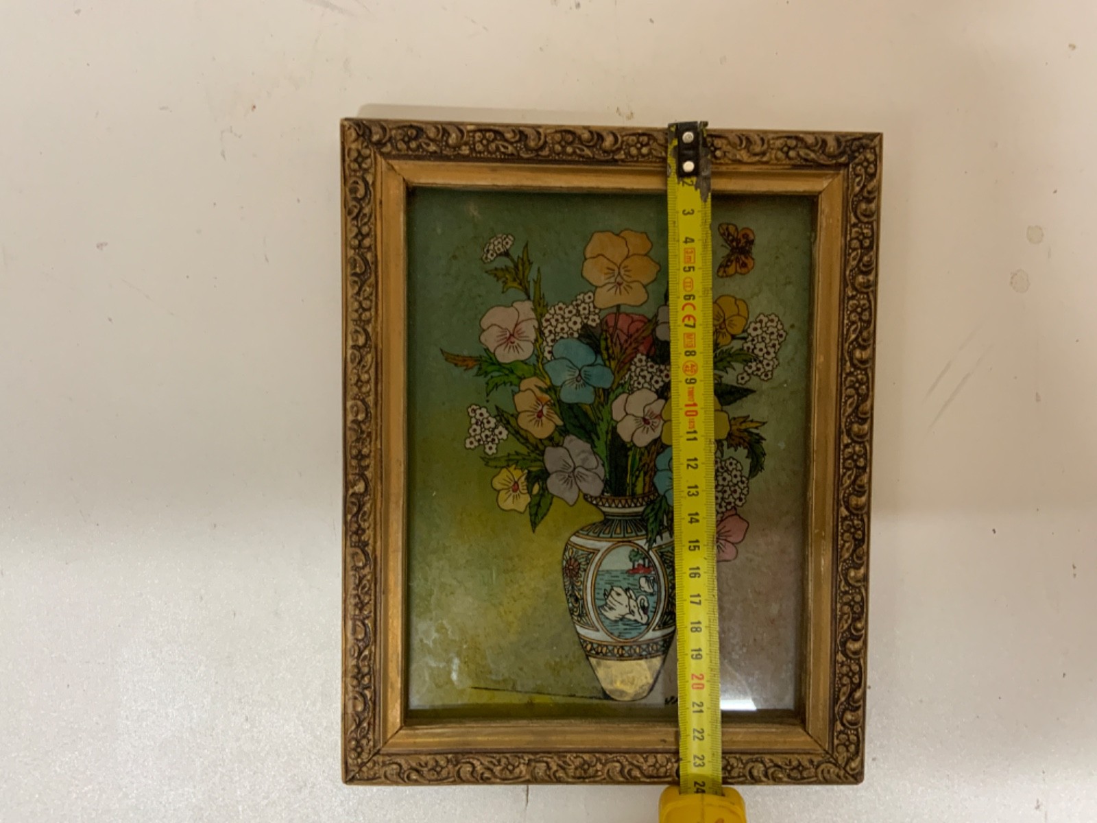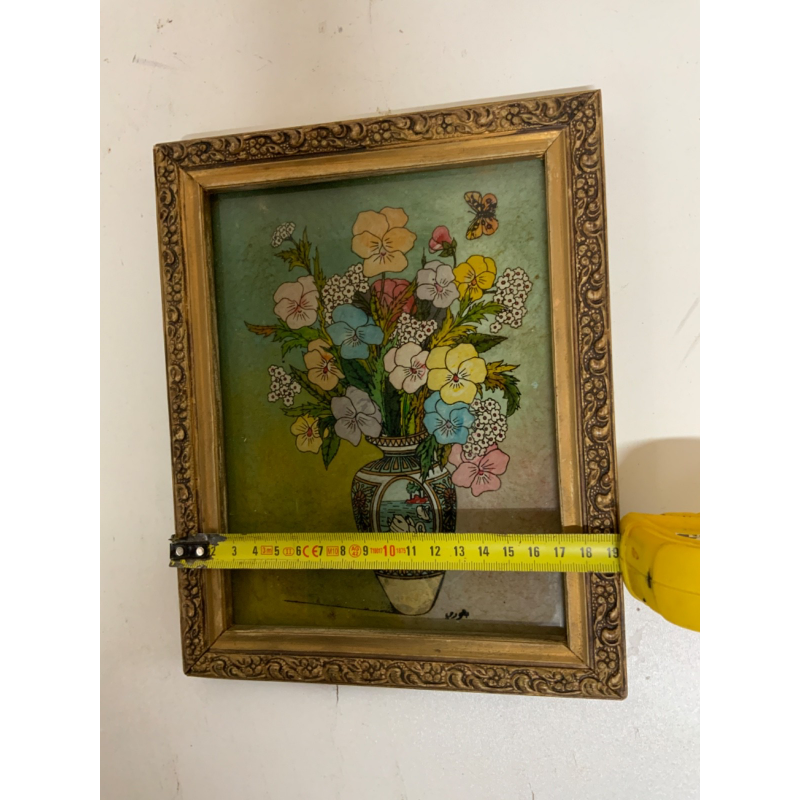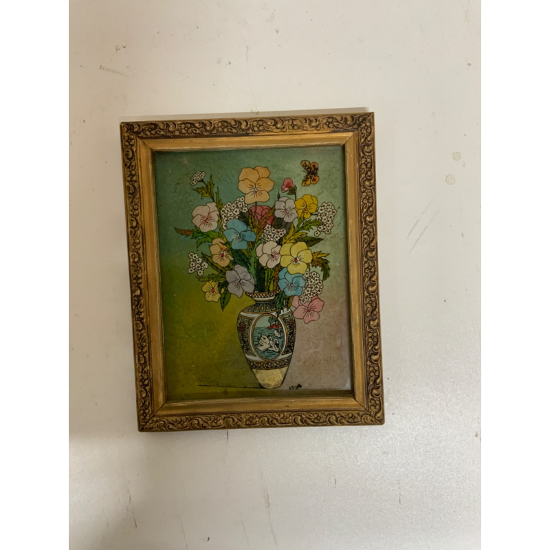 Tableau/peinture vintage française de quelques fleurs dans un vase