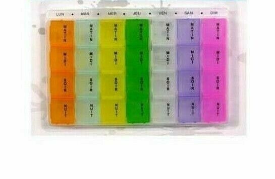 Boîte à pilules Pilulier 28 cases 7 jours avec compartiments détachables