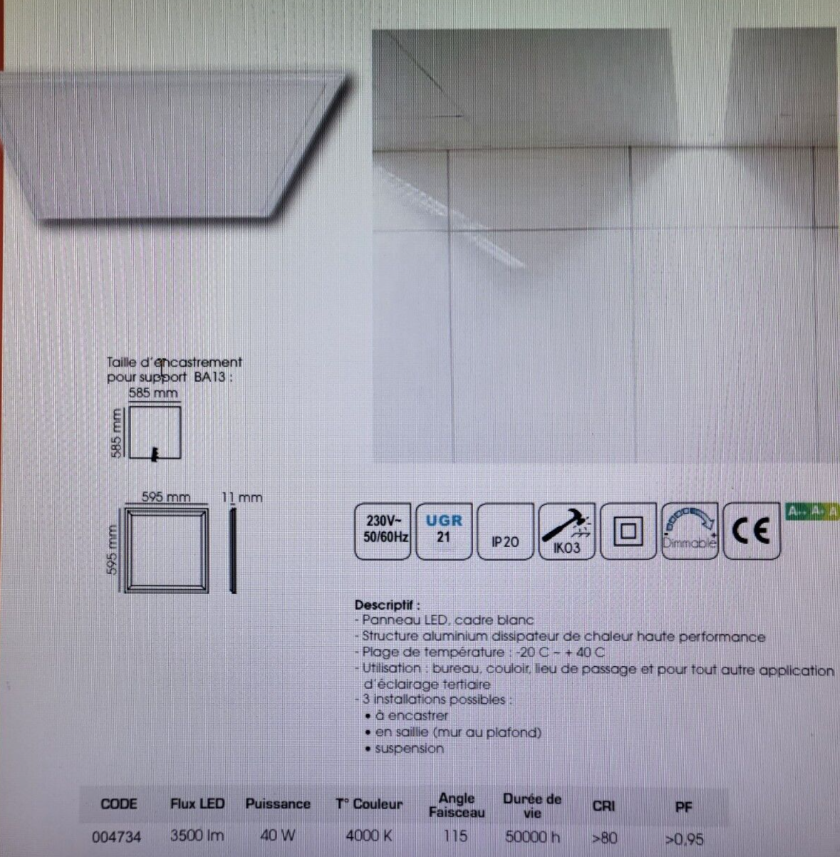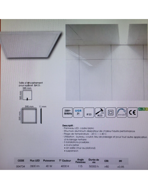 TRAJECTOIRE ECLAIRAGE PLAFONNIER PURE LED 2 BLANC 40W 3400lm 4000K réf 3430