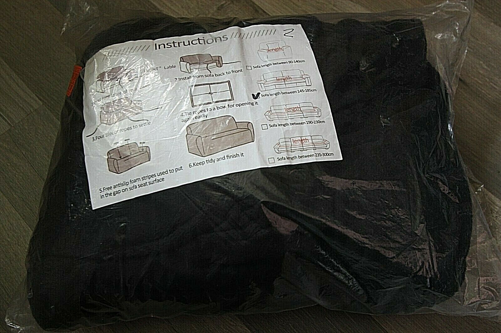 Housse de canapé microfibre noire 2 places longueur entre 145 et 185 cm