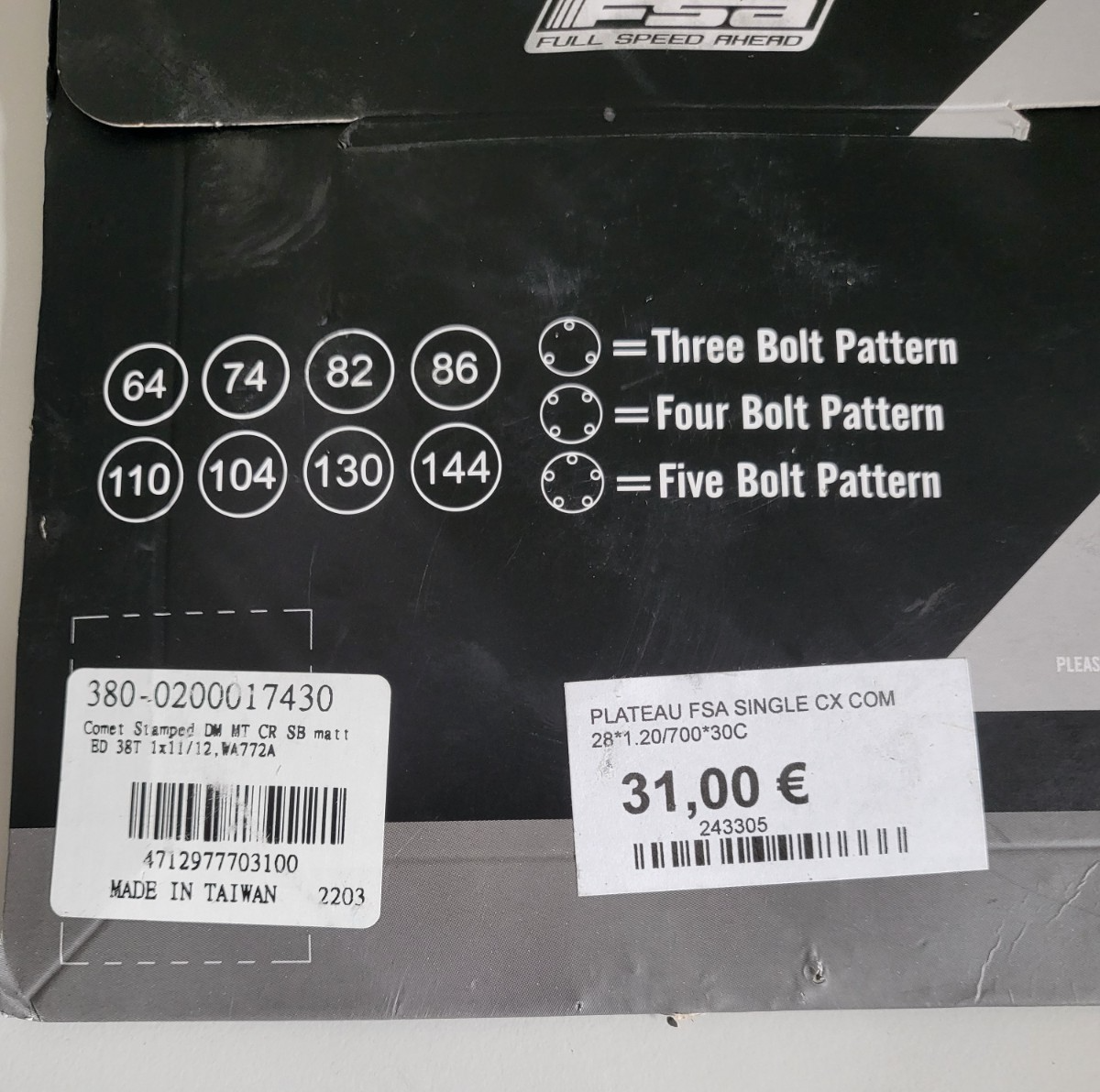 FSA Plateau single VTT Comet 38D 1x11 noir