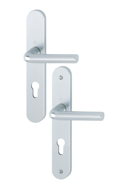 ASSA ABLOY Lot de 2 poignées Arles grt sur plaque longue argenté n° 596171