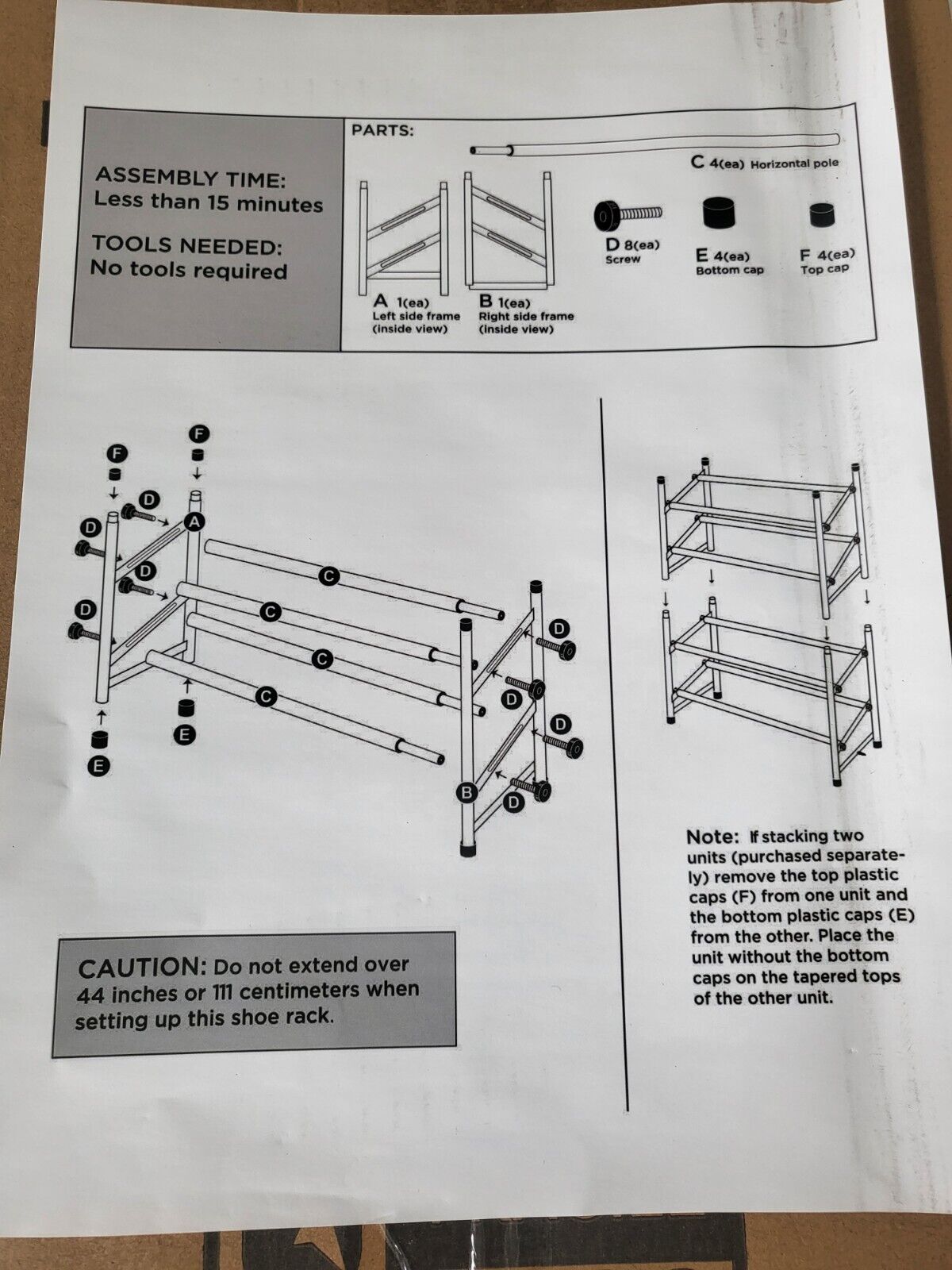 Etagère à chaussures noire 2 étages extensible jusqu'à 110 cm