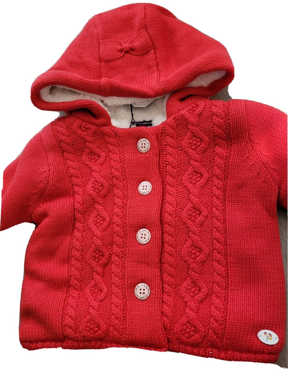 SERGENT MAJOR Gilet rouge tricoté doublé doudou Mahester Taille 6 mois