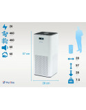 Purificateur électronique avec pré-filtre, filtre HEPA, filtre à charbon actif, filtre à catalyseur froid et ioniseur.Écran tactile LED. Surface / Volume d'utilisation : jusqu'à 60 m².Indicateur LED à 3 couleurs de la qualité de l'air dans la pièce.Nombre de vitesses : 3, mode AUTO : sélection automatique de la vitesse en fonction de la qualité de l'air.Volume maximal de traitement de l'air : 500 m³/h. Capacité du filtre CADR : 460 m³/h.