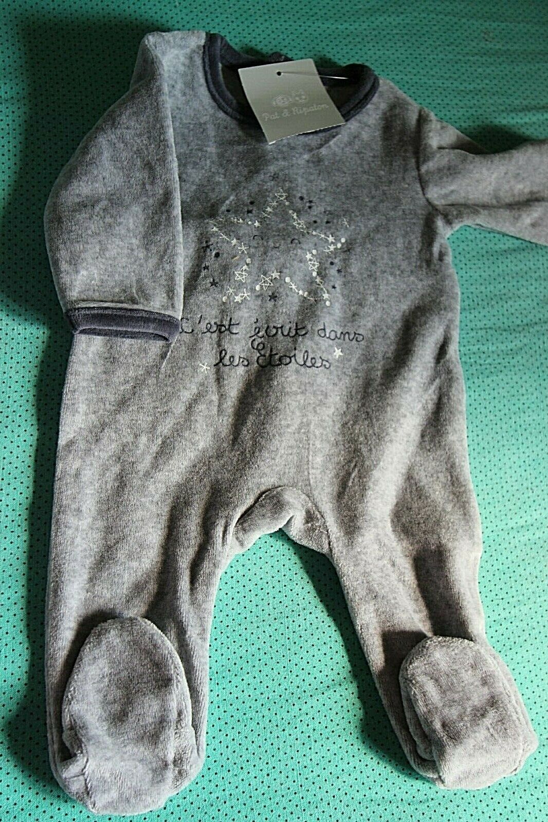 PAT & RIPATON Dors bien manches longues coton 1 mois gris imprimé