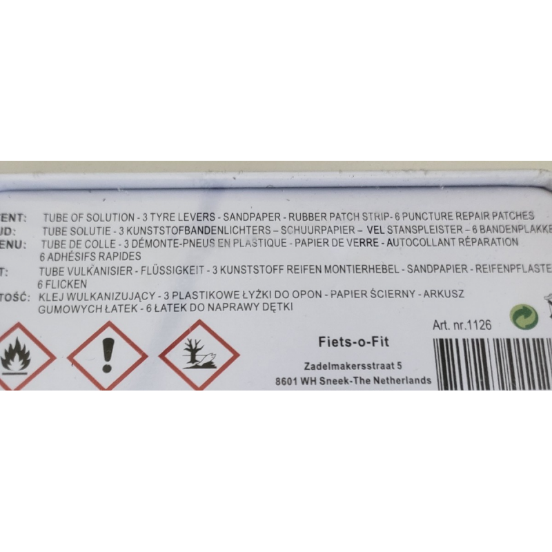 Contient : tube de colle + 3 démonte pneus + papier de verre + autocollant réparation + 6 adhésifs rapides