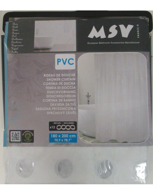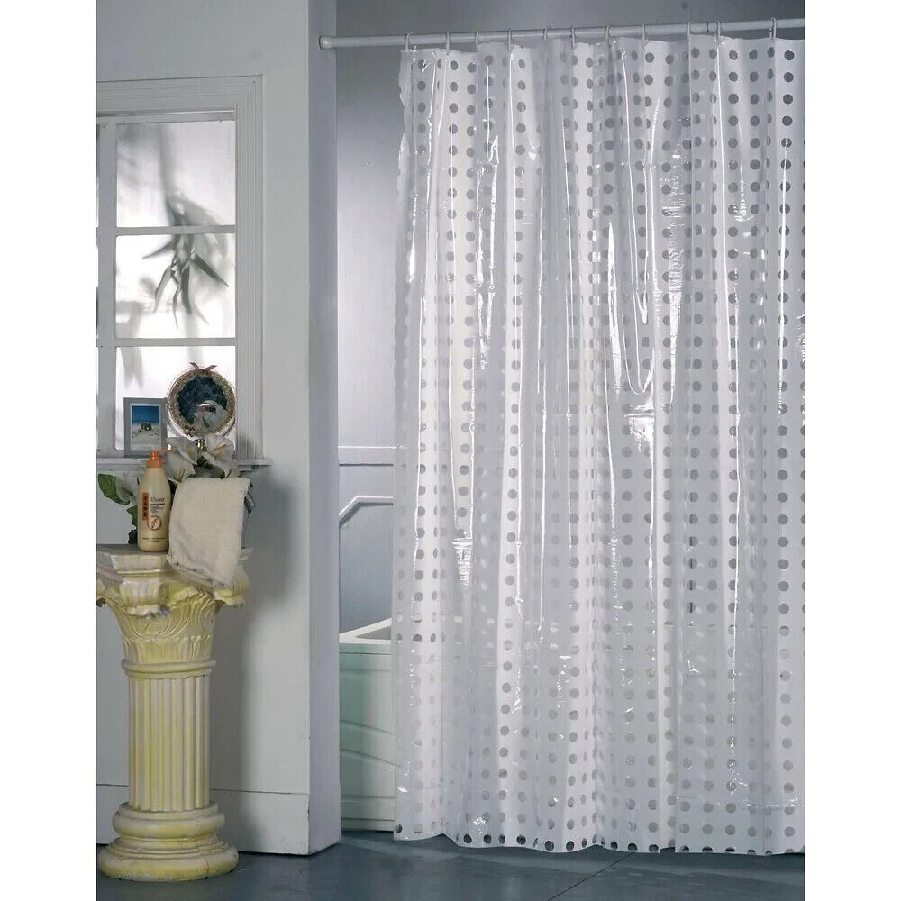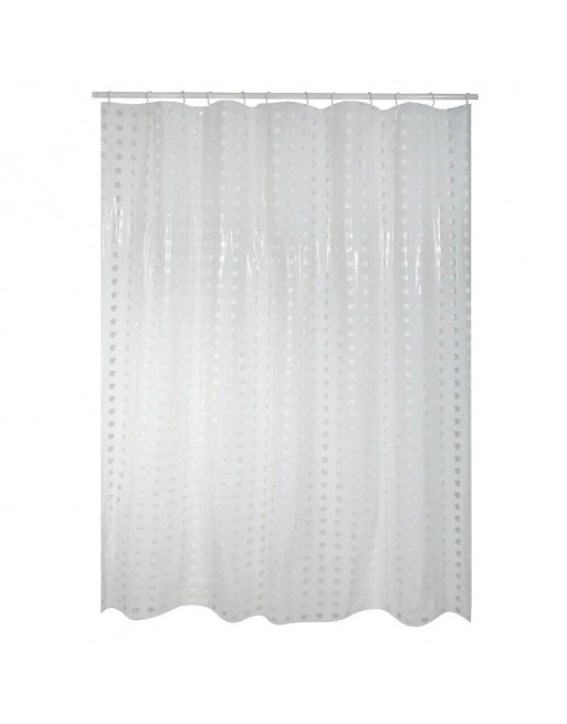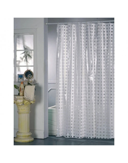 RIDEAU DE DOUCHE L.180XH.200CM BLANC A POIS TRANSPARENTS, PVC