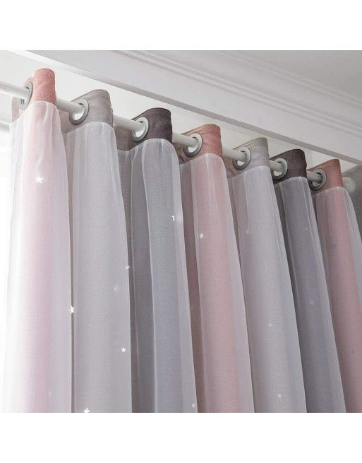 FESTNIGHT Rideau occultant isolant pour enfants gris avec étoiles 100 x 250 cm