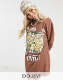 RECLAIMED VINTAGE Robe sweat shirt marron imprimée manches longues T 36 (GLS)