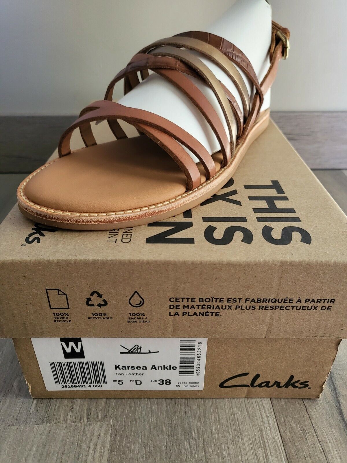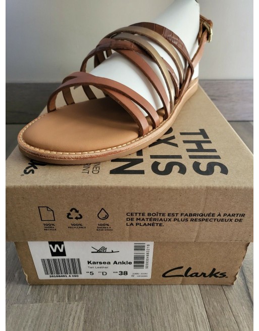 CLARKS Sandales Karsea Ankle cuir brun Taille 38