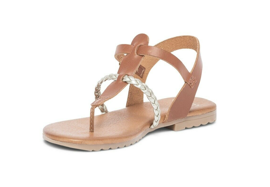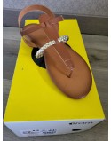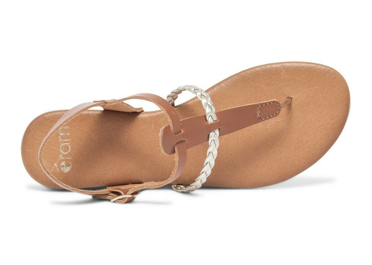 ERAM Sandales cuir marron tresse dorée talon plat Taille 39