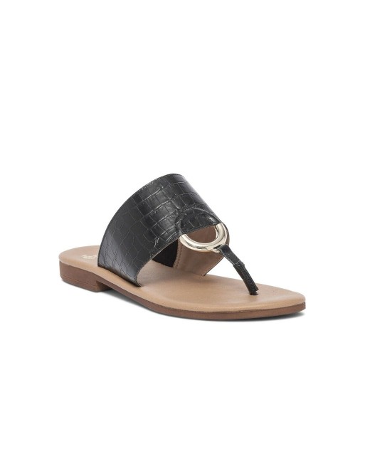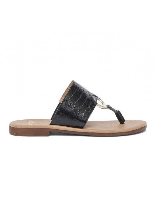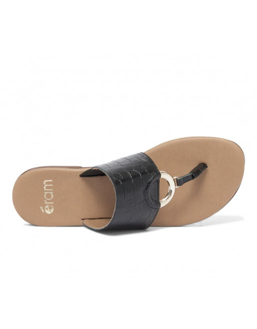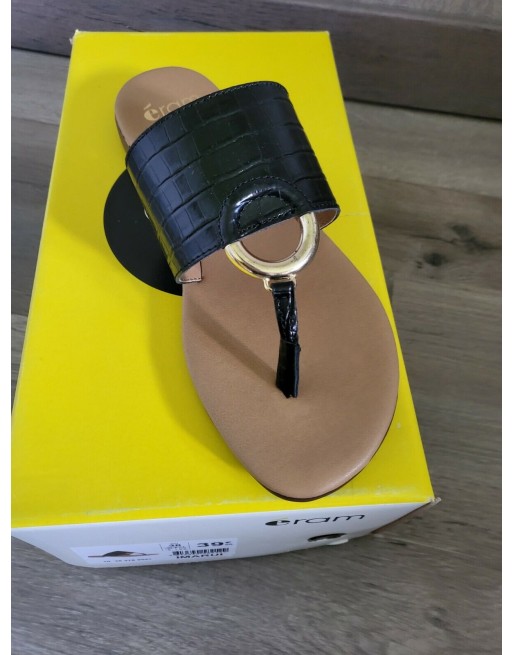 ERAM Tongs mules cuir noir effet croco talon plat Taille 38