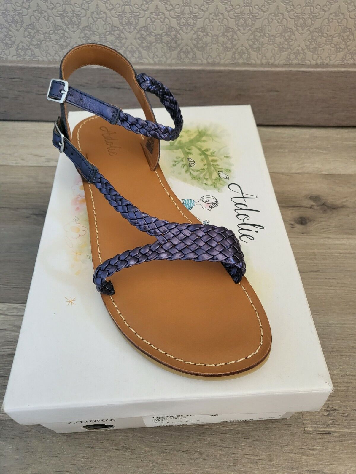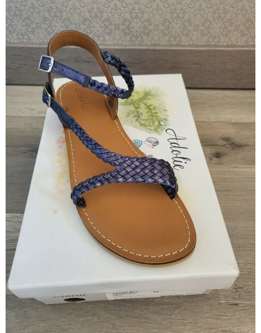 ADOLIE Sandales cuir tressé bleu marine Lazar Bi Stripes Taille 40