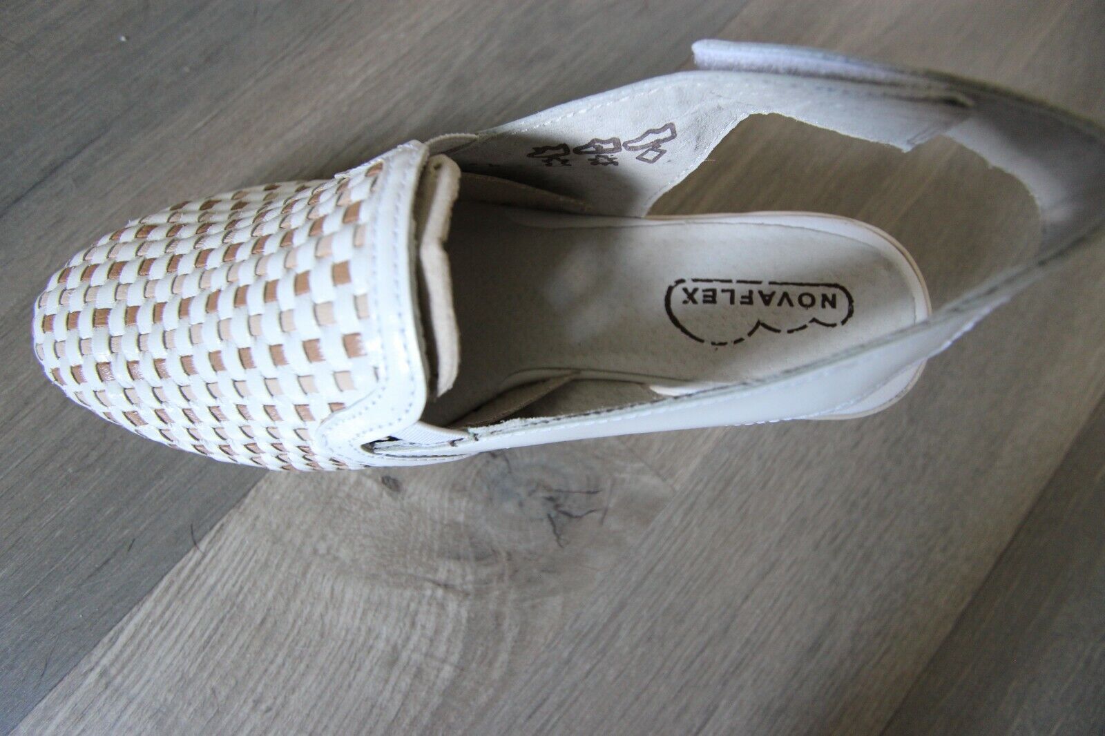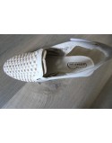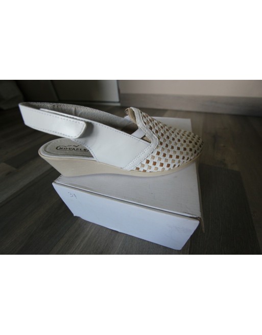 Une sandale pour femme, en cuir tressé très souple , bien emboîtante montée avec élastiques d'aisance et bride réglable par scratch