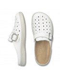 Sabot légers en cuir nubuck à doublure douce pour la peau, Elément élastique sous la boucle réglable, pour les loisirs et les professions médicales, complètement ajourés, stables et aérés; semelle intérieure amovible en mousse amortissante, revêtue de microfibre; semelle-coque