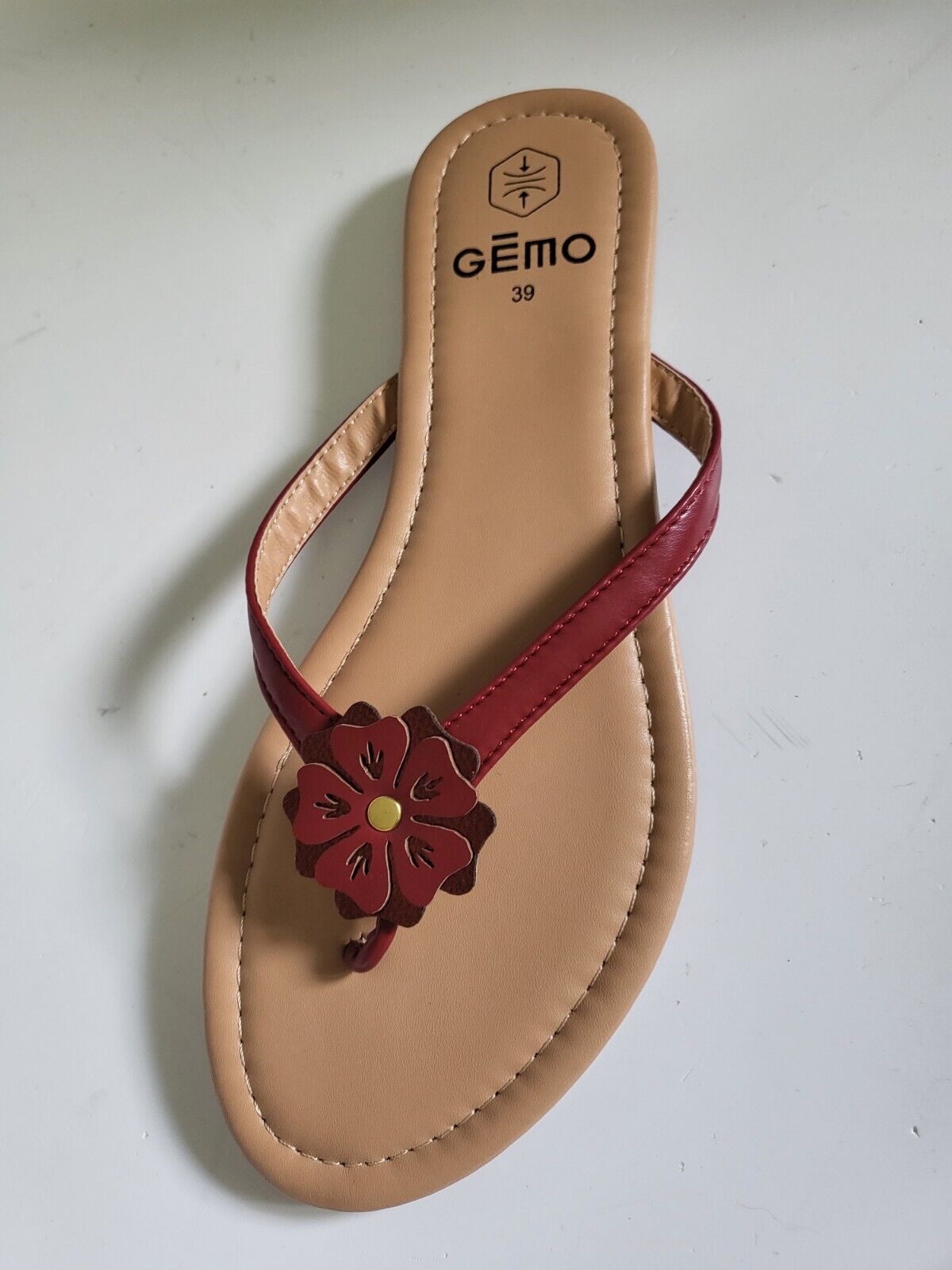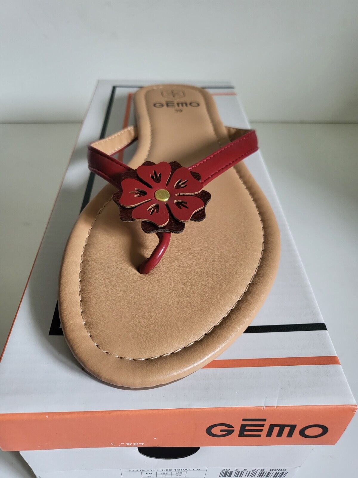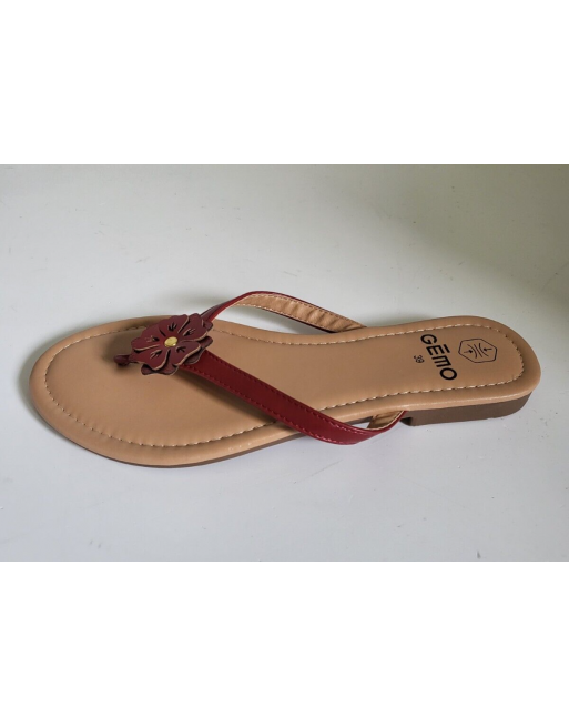 GEMO Tongs rouges avec fleurs talon plat Pacla Taille 39