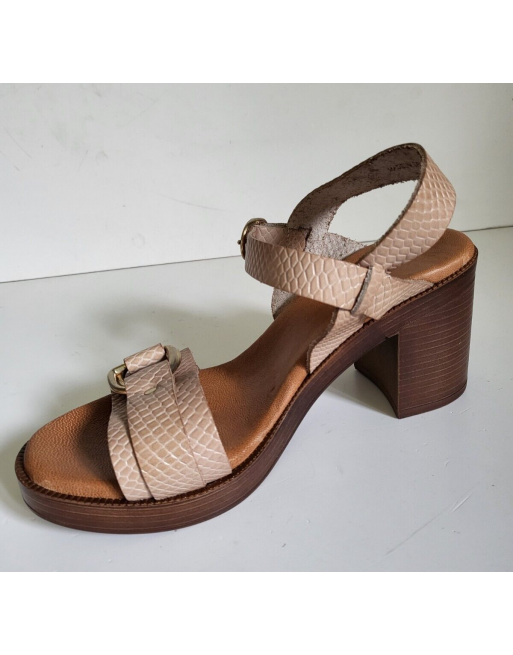 ERAM Sandales cuir beige marron à talon 8 cm Taille 37