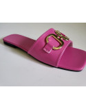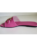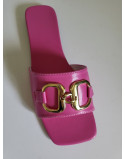 Claquette rose fuchsia avec grosse boucle talon plat