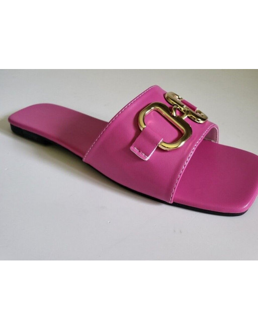 Claquette rose fuchsia avec grosse boucle talon plat taille 41 et 42