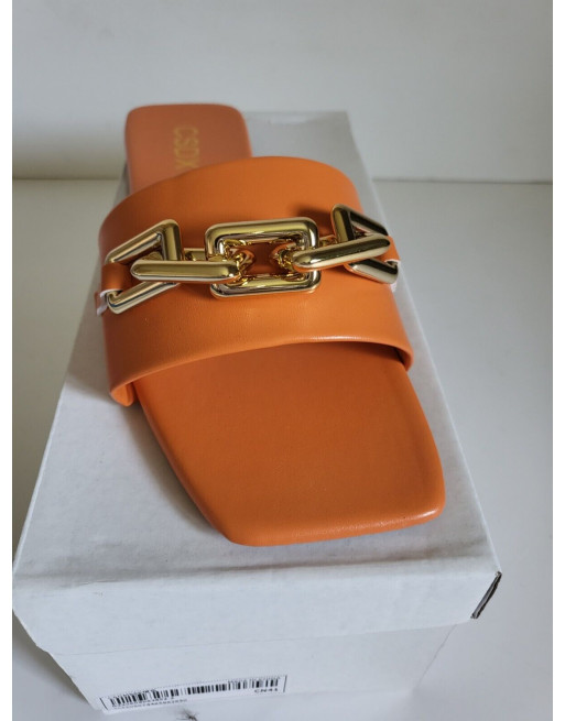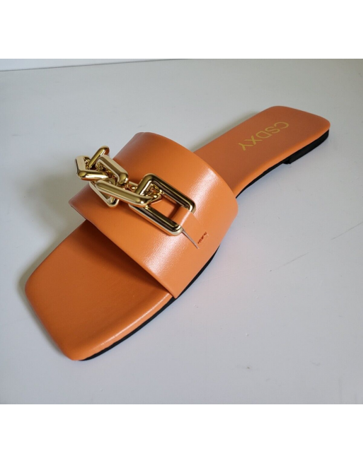 CSDXY Claquettes orange avec chaine 5 maillons dorés Taille 41