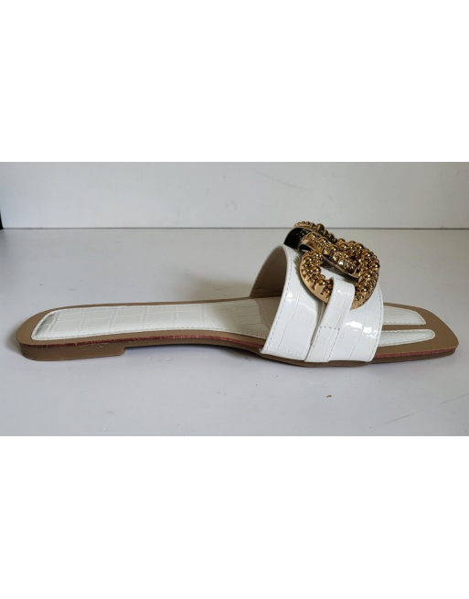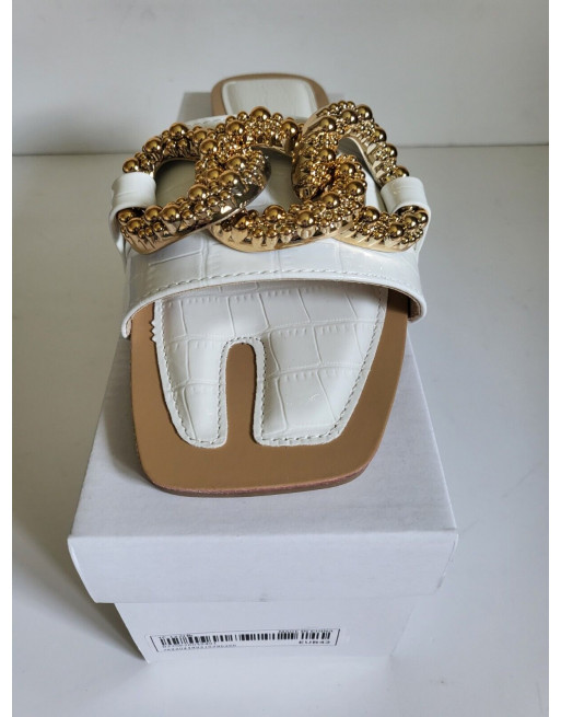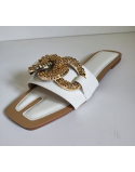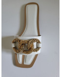 Claquettes blanches avec chaine 3 maillons dorés Taille 42