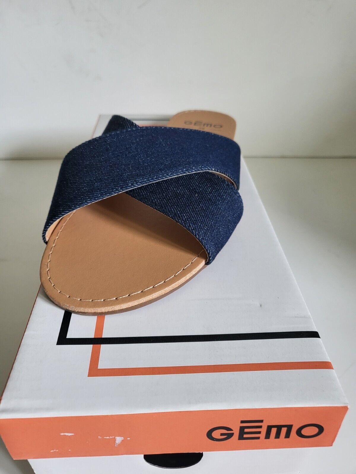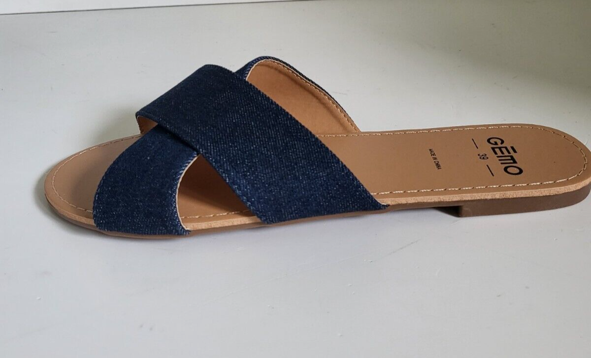 GEMO Claquettes bleues jeans croisées talon plat Taille 39