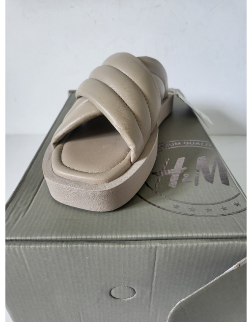 H & M Claquettes mules cuir beige talon plat Taille 38