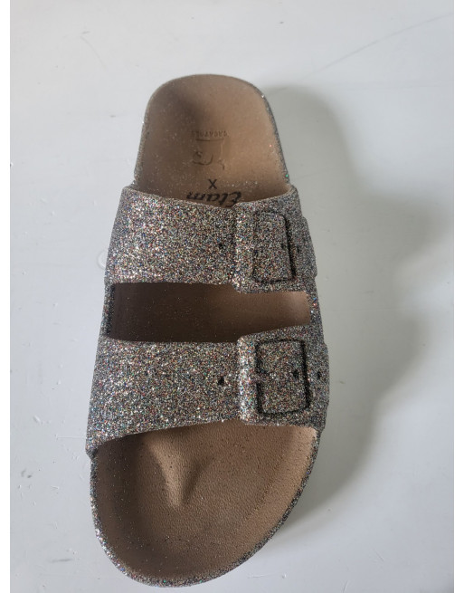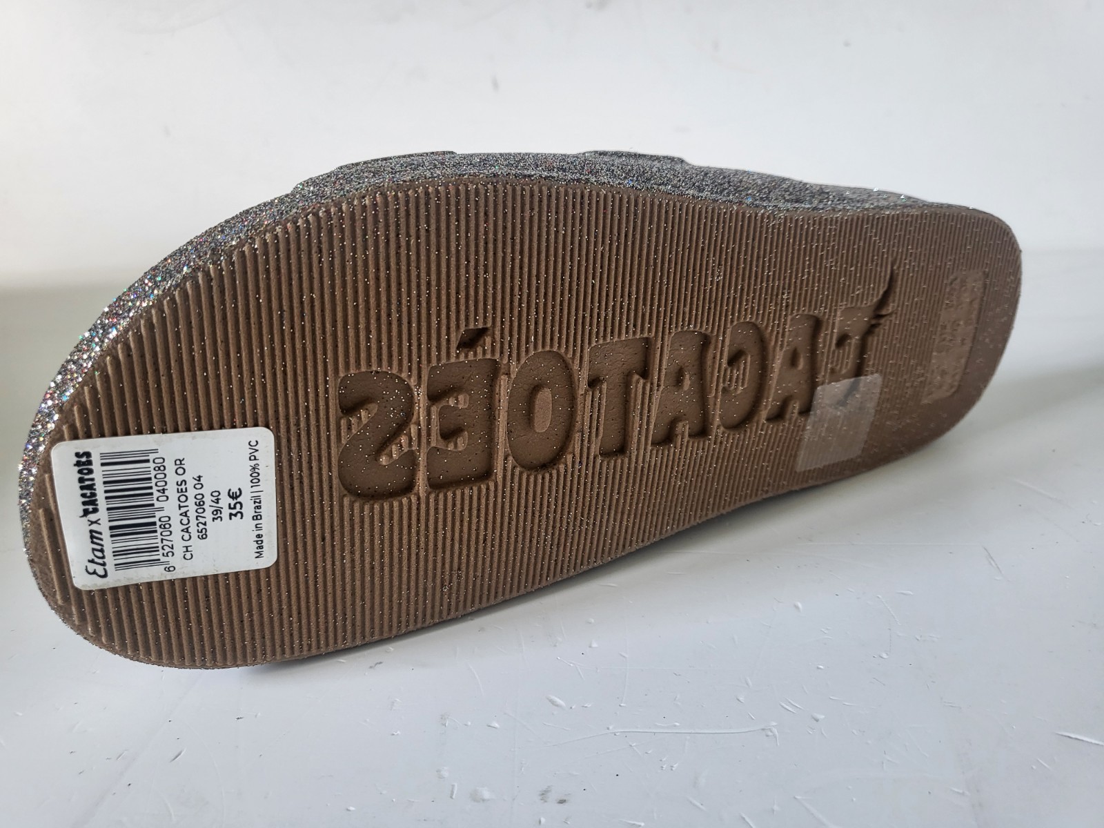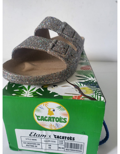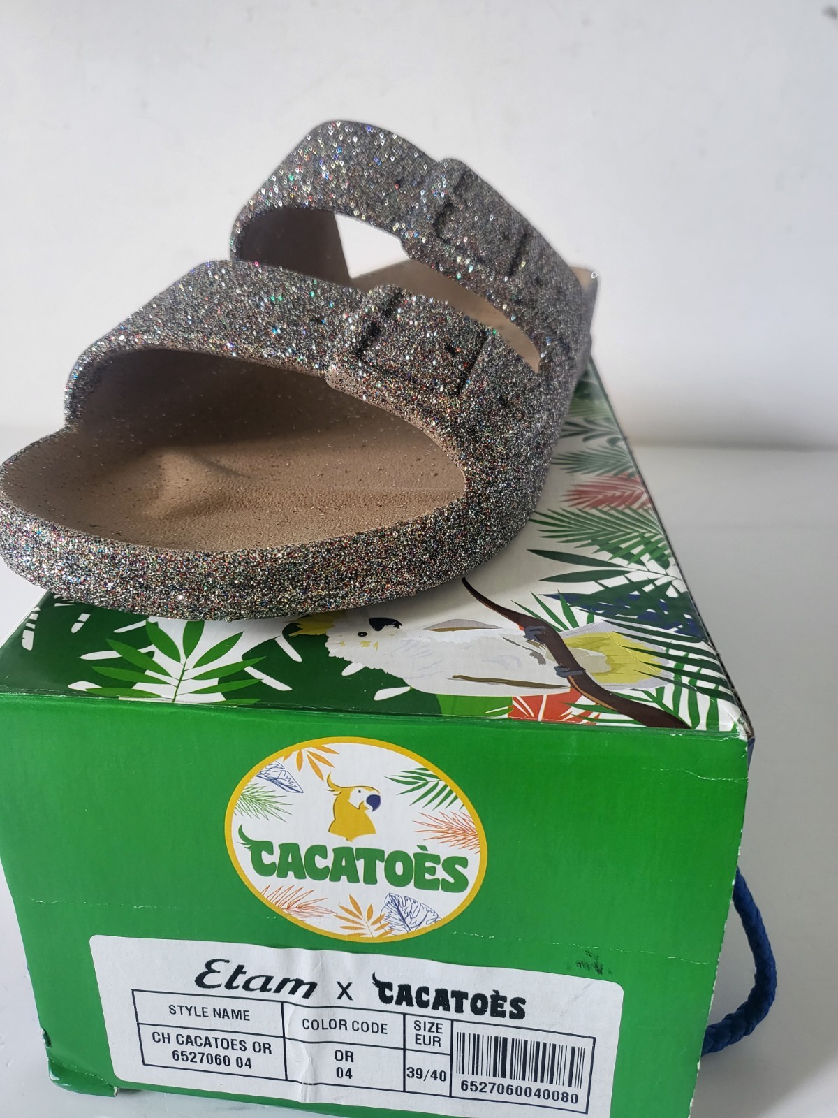 ETAM X CACATOES Mules pailletées dorées double bride talon plat Taille 39/40