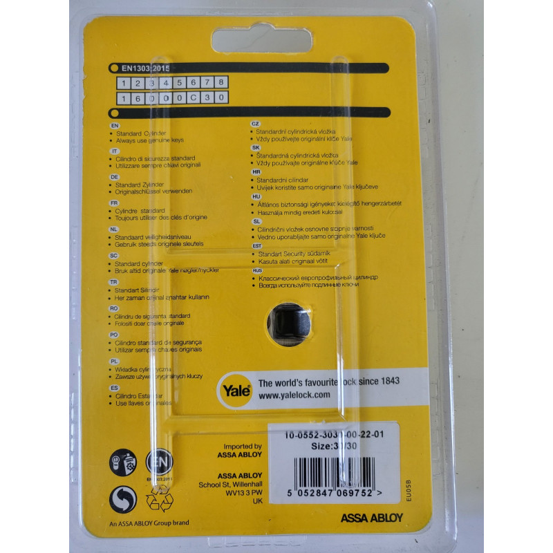 YALE Cylindre série 500 + 30x30 mm nickelé 5 goupilles 3 clés